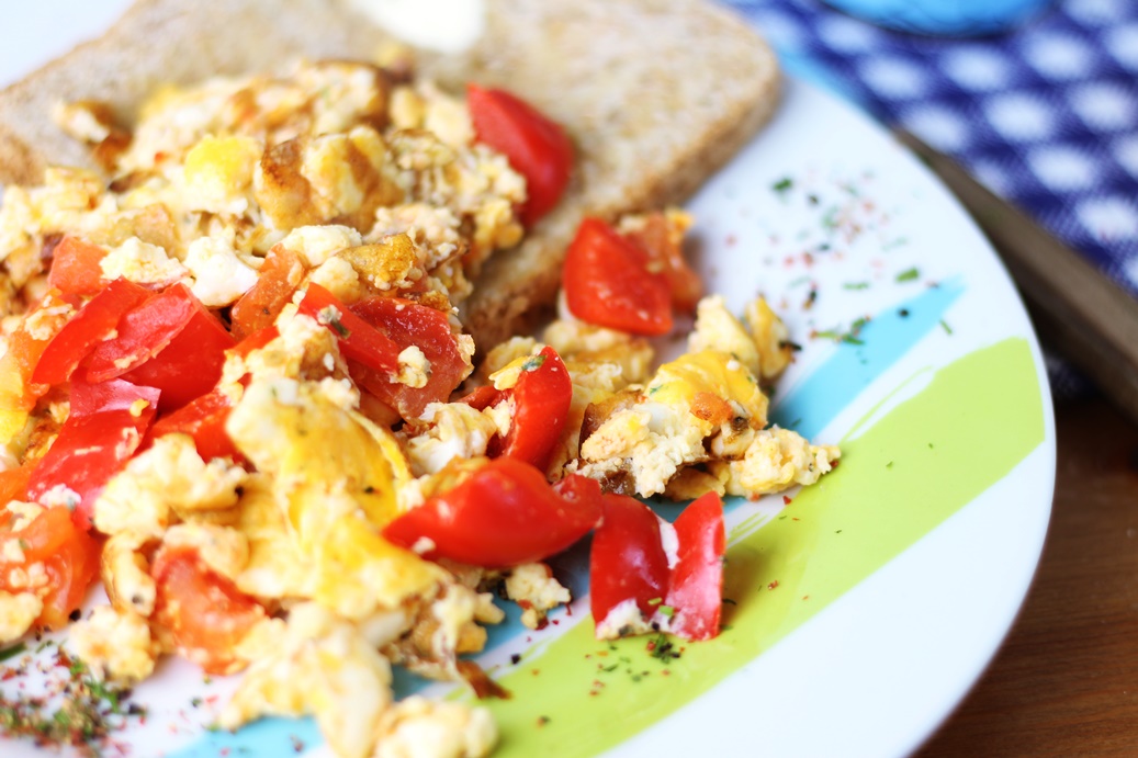 Manchmal muss es einfach ein herzhaftes Frühstück sein. Da helfen keine Marmelade, keine Pancakes, kein Honig und nichtmal ein Croissant (was ja wirklich fast immer hilft). Ich nutze die Adventssonntage nicht nur zum Plätzchen backen sondern zaubere auch gerne mal ein extra leckeres Frühstück. Natürlich kann ich das auch an jedem anderen Sonntag im Jahr machen, aber die Adventszeit ist irgendwie etwas Besonderes. Wisst ihr was ich meine? Diese Besinnlichkeit und Geborgenheit sind den Rest des Jahres über nicht ganz so präsent wie momentan. Und genau deswegen stelle ich mich heute morgen auch in die Küche und es gibt bei mir ein Power-Rührei mit Paprika und Tomaten. Wieso Power? Naja, dass Eiweiß ordentlich Energie liefert, wissen wir ja alle und in Kombination mit frischem Gemüse wird das ganze noch leckerer und gibt uns extra viel Kraft.