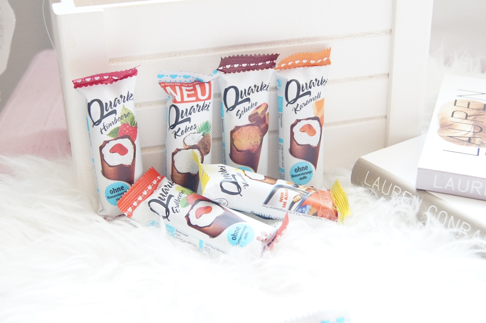 Jetzt in der Klausurenphase könnte ich die ganze Zeit Süßigkeiten essen! In der Nähe meines Schreibtisches türmen sich Schokolade, Weingummi & Co. Seit letzter Woche nasche ich aber noch etwas anderes gerne… Quarki! Ein cremiger und erfrischender Quarkriegel, den es in sechs verschiedenen Geschmackssorten gibt. „Erdbeere“ und „Himbeere“ sind die beiden fruchtigen Vertreter, die ich wirklich ausgesprochen lecker finde! Die „Schoko“ Variante kann mit einer zarten Schokocreme überzeugen und „Karamell“ ist für echte Süßmäuler geeignet. „Kokos“ und „Vanille“ sind aber meine absoluten Favoriten. Ich liebe Kokos-Geschmack sowieso und die vanillige Variante ist meiner Meinung nach ein echter Klassiker!