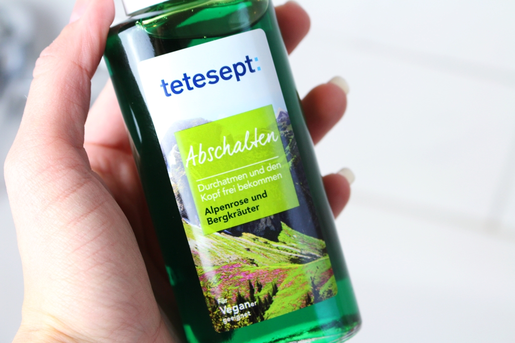 In letzter Zeit gehe ich gerne vor dem Schlafengehen schön warm duschen oder baden und vermeide es mir unnötig Gedanken über Dinge zu machen, die auch noch morgen oder übermorgen geklärt werden können. Stattdessen denke ich lieber über Dinge nach, die mich glücklich machen, für die ich dankbar bin oder die einfach einen positiven Einfluss auf mich haben. Und sei es nur eine Erinnerung an den letzten Geburstag, an den Urlaub oder an ein gutes Gespräch.Als Badezusatz verwende ich derzeit gerne die neuen Badekonzentrate von tetesept „Mein Rückzugsort“. Das Konzentrat „Abschalten“ sorgt für Entspannung mit Alpenrose und Bergkräutern und hilft den Kopf frei zu bekommen.