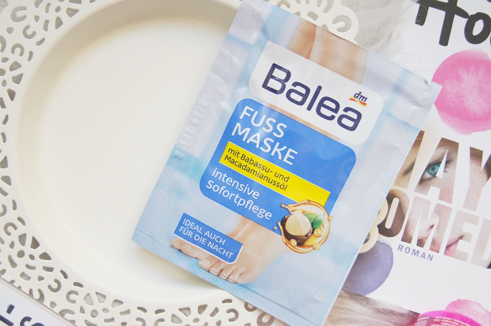 Wie schon angesprochen, steht der Sommer in den Startlöchern und das bedeutet, dass auch die Füße aus dem Winterschlaf erwachen dürfen. In den kalten Wintermonaten vernachlässigt man seine Füße einfach viel zu oft und die Haut wird schnell trocken und rissig. Ich gehe zwar regelmäßig zur Pediküre, aber das ist auf Dauer wirklich ein teures Vergnügen. Wer sich das nicht immer leisten kann oder möchte, kann in den Drogeriemärkten zahlreiche Fußpflegeprodukte finden, mit denen sich wunderbar ein „Home-Spa“ veranstalten lässt. Für gerade einmal 0,65€ ist zum Beispiel die Balea Fußmaske zu bekommen, die die Füße intensiv pflegt und streichelzart macht. Der Duft ist sehr angenehm und die enthaltenen Wirkstoffe scheinen wirklich gut zu helfen. Ich habe die Maske über Nacht einwirken lassen (mit Baumwollsocken) und am nächsten Morgen waren meine Füße wunderbar weich.